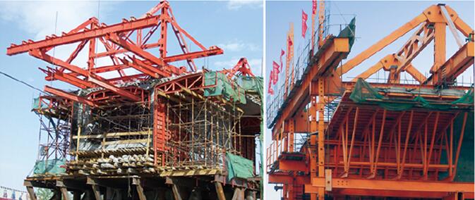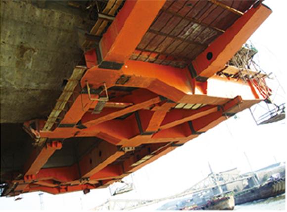 三角形掛籃具有前橫梁重心低、操作安全方便、錨固簡單、行走安全系數(shù)大等優(yōu)點。